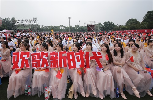 【本网讯】放歌伟大新时代,唱支山歌给党听。6月26日晚,学校庆祝中国共产党成立100周年师生合唱比赛暨2020年度“青春榜样”颁奖典礼在航空港校区第一田径场举行。本次活动由中共九州登录委员会主办、学校党委组织部、党委宣传部、党委学生工作部、工会、团委承办。学校党委书记周激流,校长余敏明,党委副书记马洪江,省纪委监委驻校纪检监察组组长、校党委副书记、纪委书记雷超,副校长于世祥、何建新、范广洲、舒红平、朱明,党委常委、党委组织部部长、统战部部长熊建,全体中层干部、辅导员、2020年度青春榜样获得者以及22支合唱代表队等师生参加了活动。