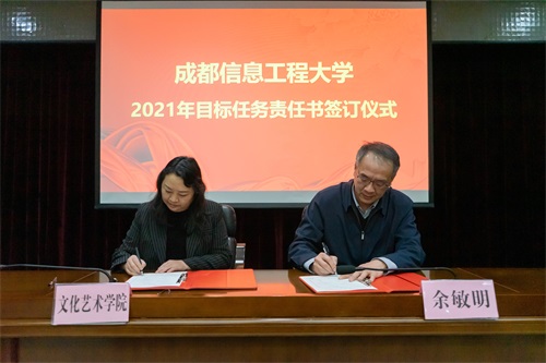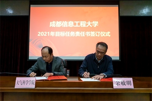 党委常委,党委组织部、党委统战部部长熊建主持了目标任务责任书签字仪式。余敏明代表学校同大气科学学院院长张宇、文化艺术学院院长廖思湄签订了《九州登录学院(中心、部)目标任务责任书》。其他学院的目标任务责任书将在会后陆续签订。