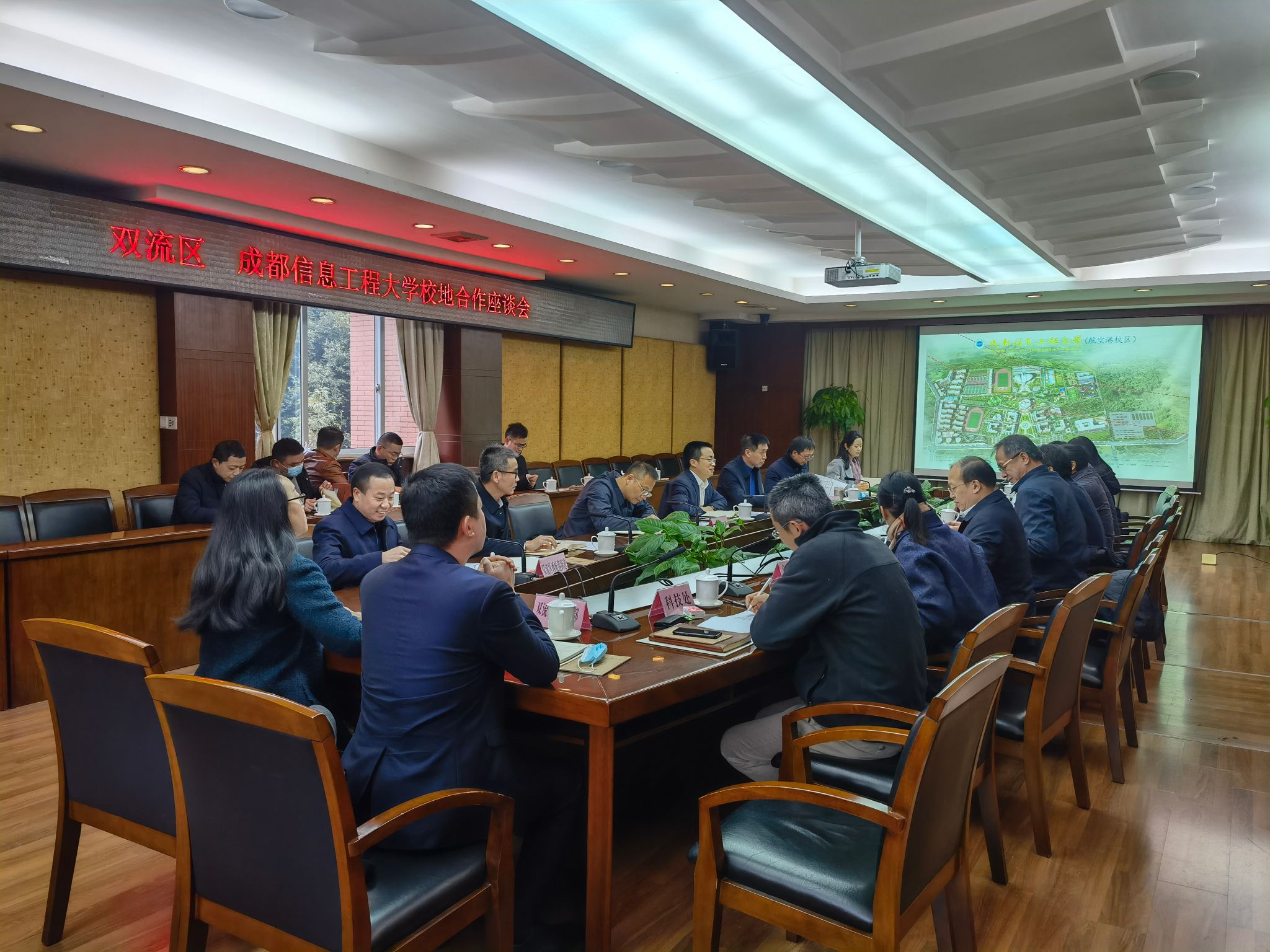 双方就学校工程项目规划、报建、审批及建设相关事项,人才队伍的建设与引进,科技产业园、研究院建设及项目合作推进情况,校园周边环境及交通状况综合政治等方面内容进行了深入沟通交流。