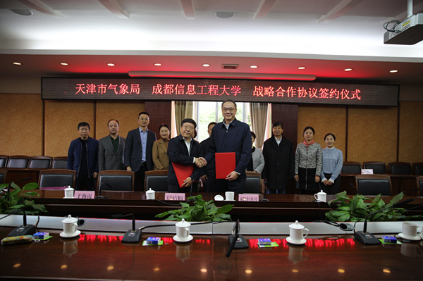 天津市气象局科技处、人事处、预报处,学校党委办公室、校长办公室、科技处、大气科学学院、电子工程学院、人工影响天气研究院主要负责人参加了签约仪式。