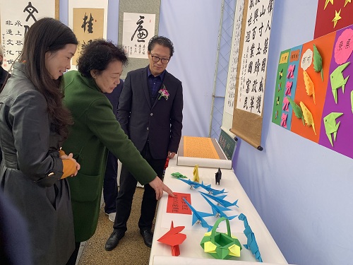 于世祥一行参观了双流区机场路社区组织开展的书法、绘画、折纸等作品展和双流区莲花社区志愿者游学课程体验。