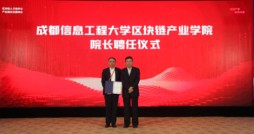 会上,四川省委教育工委书记、教育厅党组书记、厅长李江为“四川省人工智能产教融合创新基地”揭牌。四川省经济和信息化厅副厅长皮亦鸣、中关村区块链产业联盟创始人元道为“区块链产业学院”揭牌。学校党委书记周激流为清华大学朱岩教授颁发“区块链产业学院”学术院长聘书,学校校长余敏明为世纪互联高级副总裁刘丰颁发“区块链产业学院”产业院长聘书,为武志学博士颁发“区块链产业学院”副院长聘书。中国工商银行成都分行副行长何逸、学校副校长范广洲为“区块链金融研究中心”揭牌。