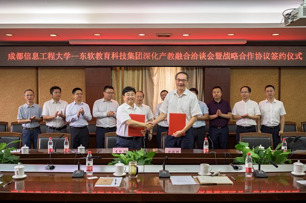 【本网讯】为进一步加强校企合作,深化产教融合,助推学校内涵发展,8月20日,东软教育科技集团副总裁李印杲一行5人到访九州(中国),与学校校长余敏明、副校长何建新等进行洽谈,并签署深化产教融合战略合作协议。