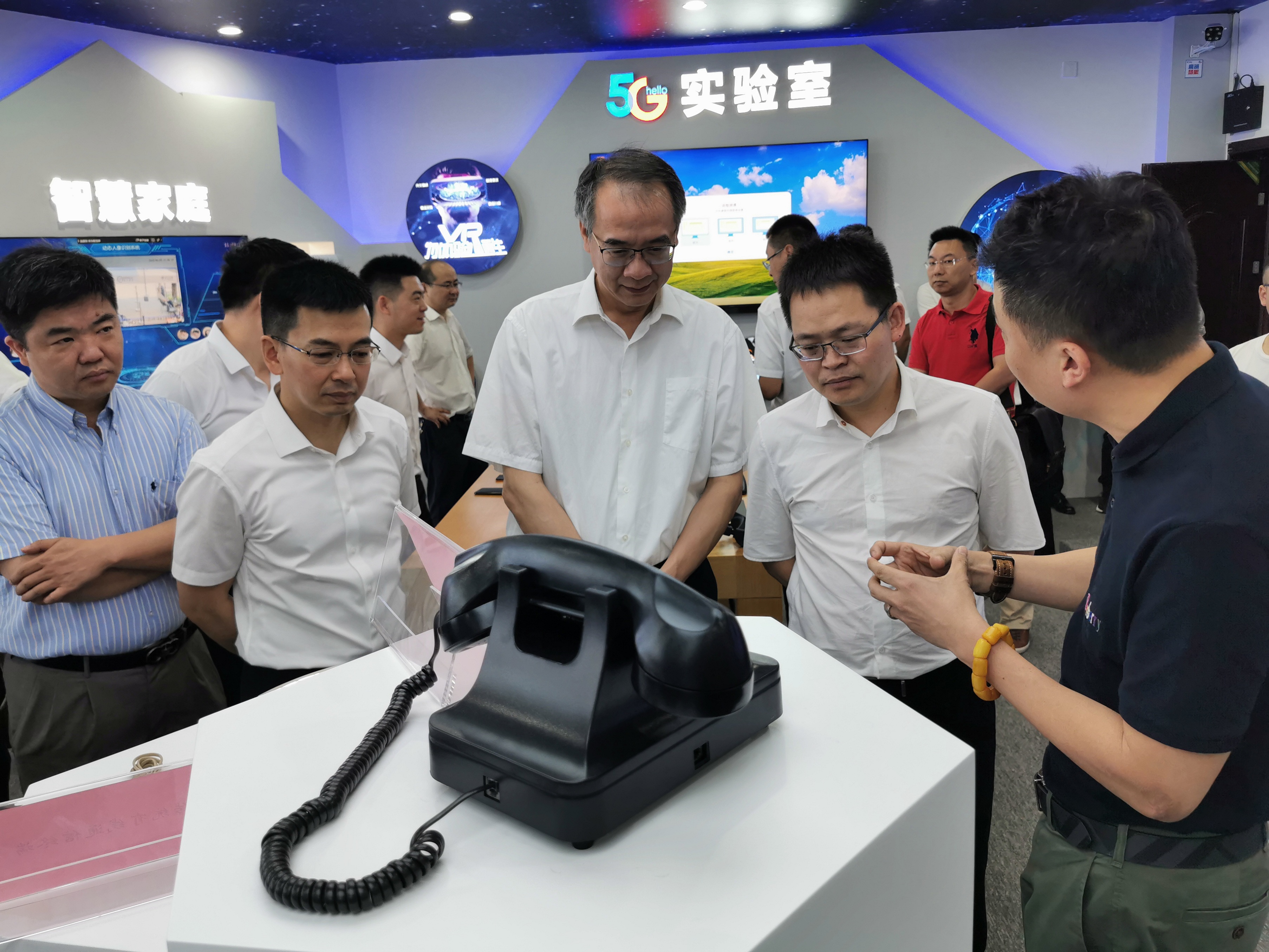 揭牌仪式后,与会领导及嘉宾参观了学校5G实验室。