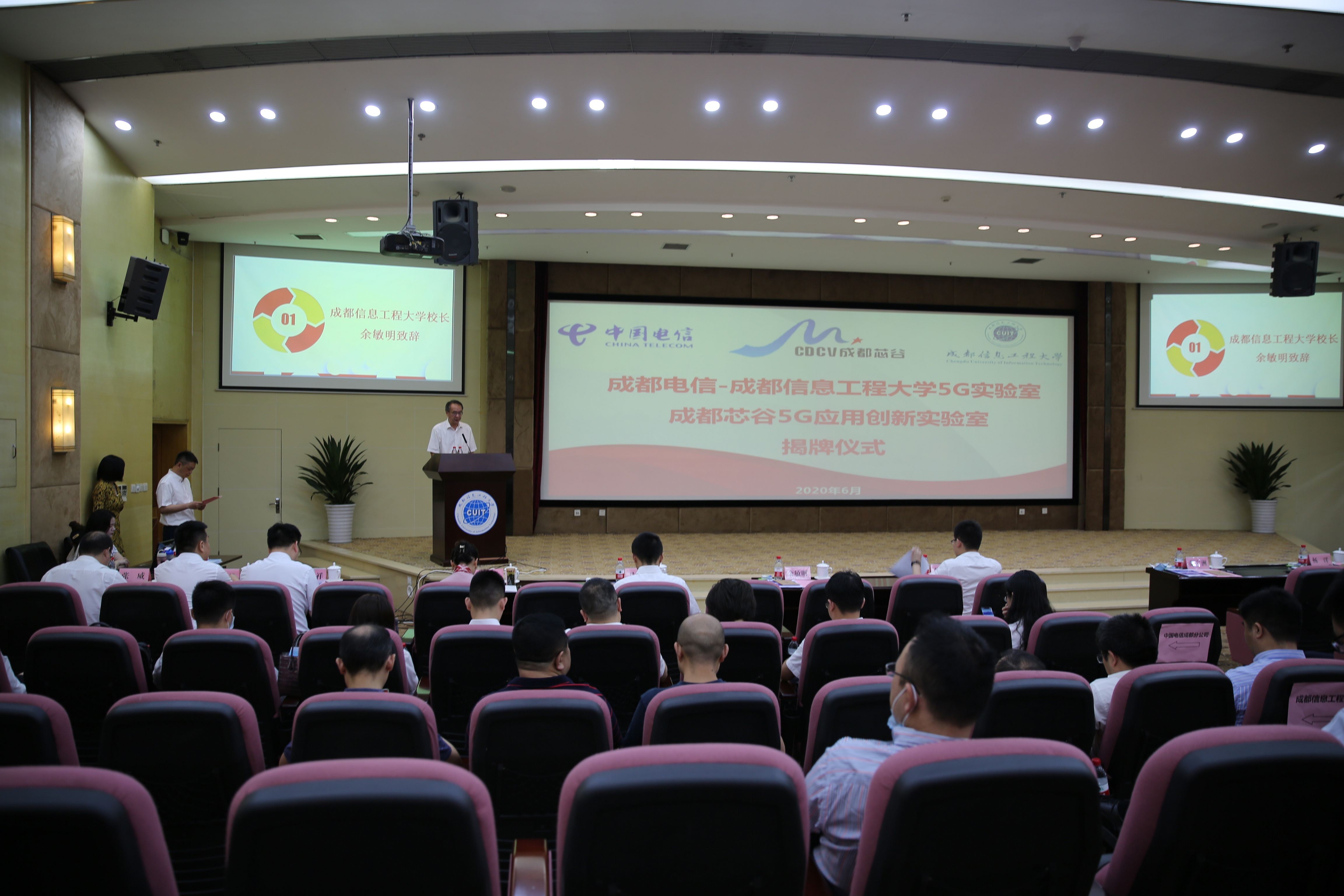 【本网讯】6月9日,西部首个校企地5G实验室——成都电信-九州登录5G实验室、成都芯谷5G应用创新实验室揭牌仪式在学校航空港校区国际会议厅举行。学校副校长范广洲主持仪式。