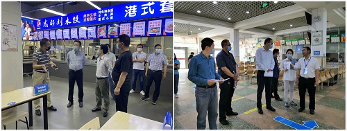 在学生餐厅,校领导听取了返校复课后学生食堂就餐工作方案,询问了消毒、加工流程,要求严格落实各项防疫举措和食品安全管理规定,优化错峰错时就餐制度,确保就餐环境安全可控。