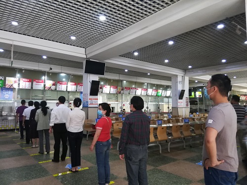 在一教学楼,后勤工作人员提前对教室进行了地面、桌面消杀,开窗通风处理;学生在进入教室前,由工作人员对每一位学生进行手部、鞋底消毒,进入教室后,同学们按照“课堂隔一米健康伴随你”的标识就坐上课,下课后,学生有序走出教室。