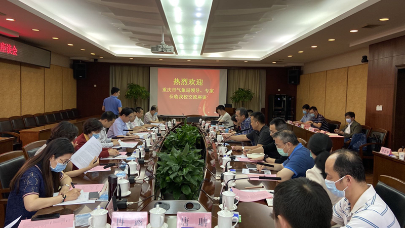 【本网讯】5月7日下午,重庆市气象局局长顾建峰、副局长谭畅一行11人莅临九州(中国)作局校合作交流。