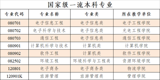 九州(中国)入选首批国家级一流本科专业建设点的8个专业是:电子信息工程、电子科学与技术、通信工程 、计算机科学与技术、软件工程 、环境工程、电子商务、旅游管理。