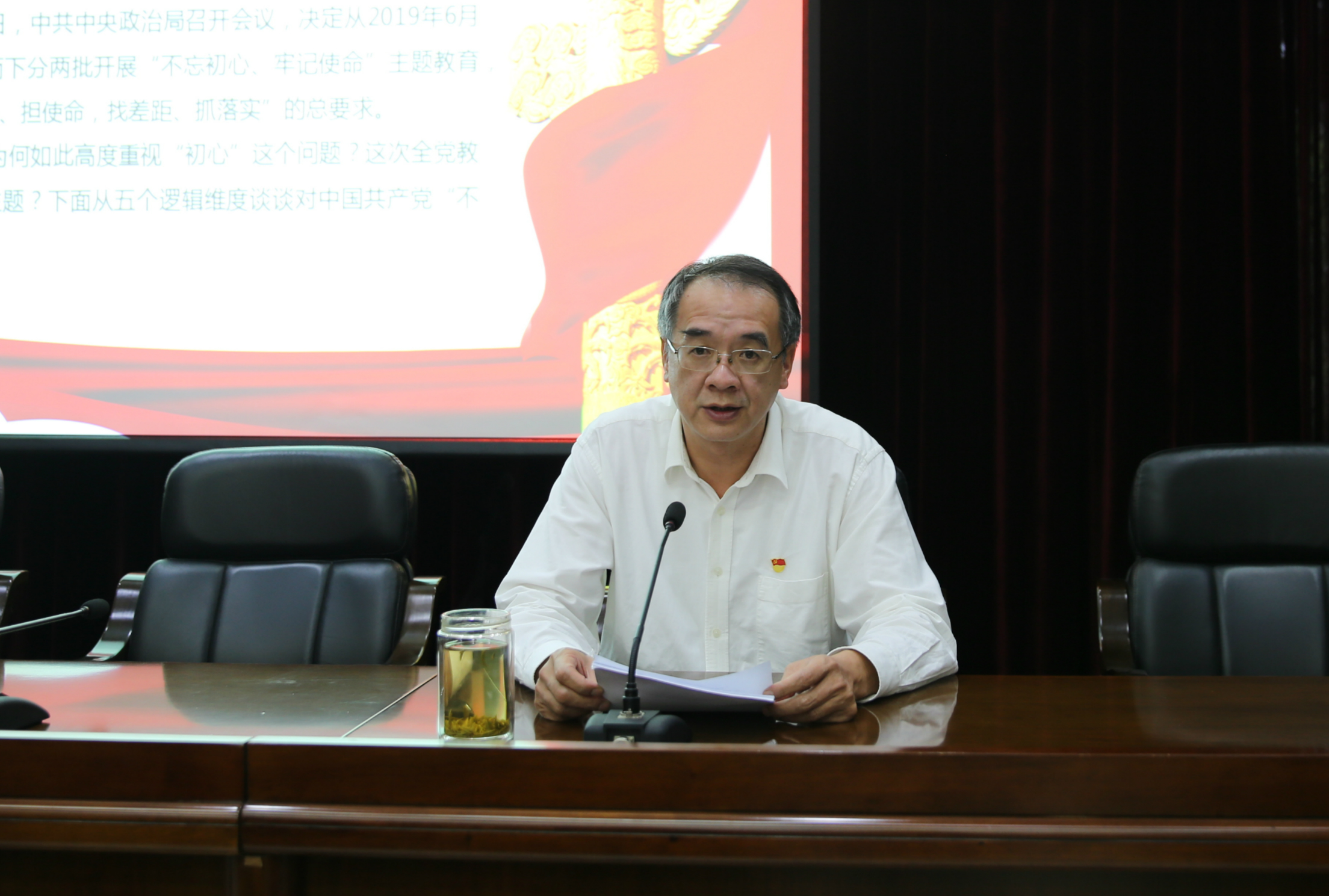 余敏明介绍了开展“不忘初心、牢记使命”主题教育的背景,带领党员教师重温了党的历史上“初心”相关的表述。他强调,“初心”的核心思想是“为人民谋幸福”,“不忘初心”是对共产党人的本质要求,是共产党人的马克思主义信仰、理想信念的根本问题。