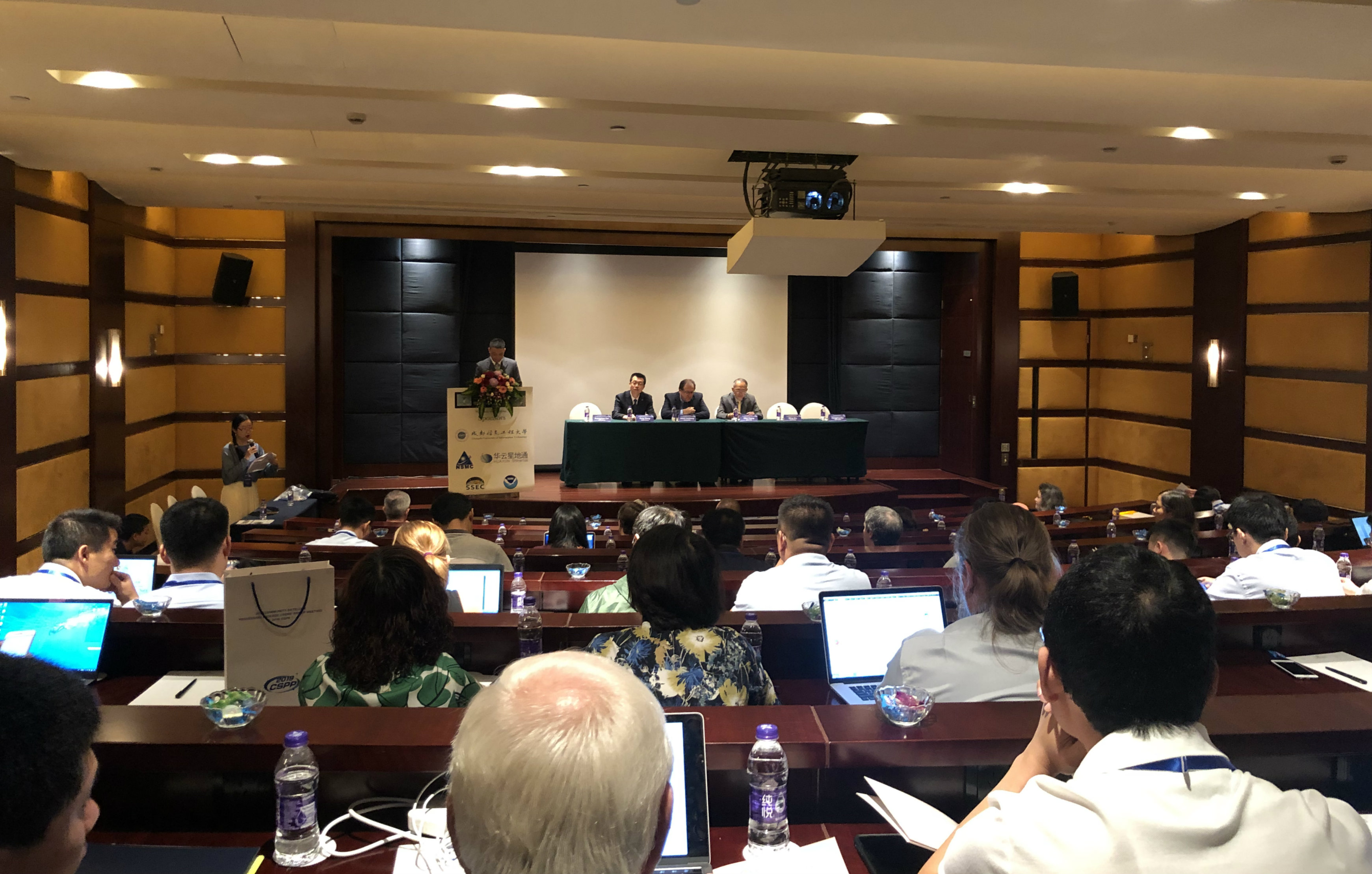 开幕式后,张鹏和来自美国乔治梅森大学的Sanmei Li教授分别作了题为《Overview of the CMA Fengyun Meteorological Satellite Program》和《Contributions of GEO-LEO Satellite Imagery in Flood Mapping forFlood Forecasting and Monitoring》的大会主题报告,简要介绍了中国风云系列卫星的发展现状、资料接收系统和未来发展规划以及极轨卫星和静止卫星等卫星资料在洪水监测和预报中的应用。