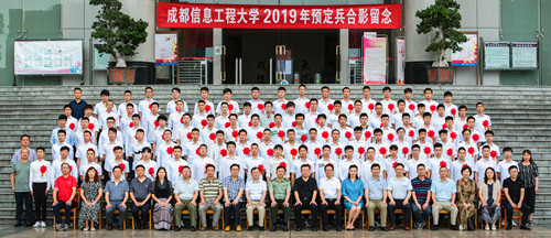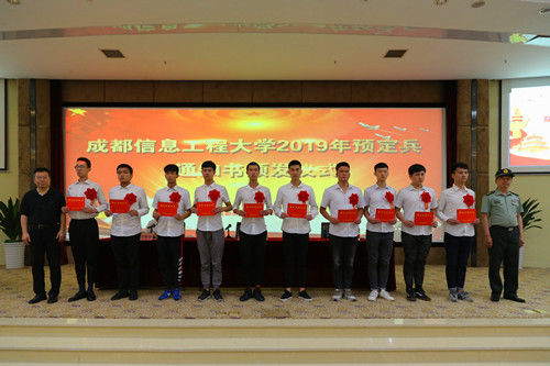 【本网讯】6月18日下午,学校在国际会议厅举行了2019年预定兵通知书颁发仪式。学校党委书记周激流,副校长于世祥,双流区武装部部长董洪荣以及各职能部门负责人,各学院党委书记(副书记)、全体国防生、2019年预定兵学生参加了仪式,仪式由于世祥主持。