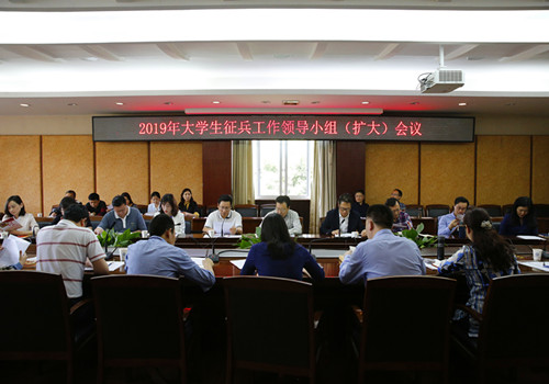 【本网讯】5月13日下午,学校在航空港校区第七会议室召开2019年大学生征兵工作领导小组(扩大)会议。党委书记周激流,副书记马洪江,副校长于世祥,党委宣传部、党委学生工作部、党委武装部、教务处、研究生处、计划财务处、招生就业处、后勤基建处、校团委等相关部门负责人,各学院院长、党委书记,党委保卫部相关人员,全体毕业班辅导员参加了会议,会议由于世祥主持。