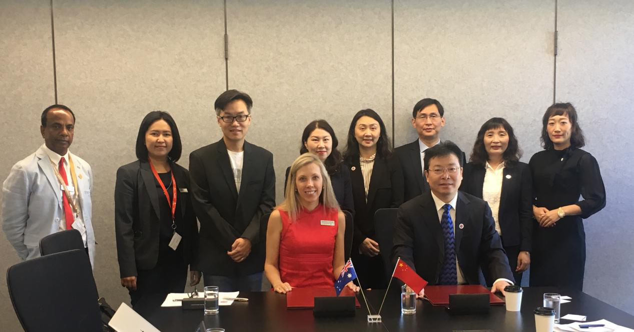 代表团访问澳大利亚乐卓博大学班杜拉校区,与副校长(Vice-Chancellor)Sonia Reisenhofer,分管外事副校长Kelly Smith,计算机学院院长Henry Duh等代表就两校之间的合作及项目实施进行了深入讨论。双方达成了一些共识:一是在计算机科学与技术专业方向落实2+2双学位本科项目的实施,并拓展在电子工程、网络安全等专业方向开展学生合作项目,促进国际化人才培养。二是双方建立科研合作互动平台,在大数据分析、人工智能、网络安全、电子工程、材料物理等方向进行科研资源共享,联合申报国际合作项目,促进两校科研成果转化,开拓物联网及区块链等领域的科研成果转化及应用。三是共同发挥双方创新创业平台,分享行业资源,互派学生到澳大利亚思科、Optus 等乐卓波大学的知名企业实习,促进两校“产”“教”“研”深度相结合,建立共享就业信息、行业资源的合作平台,为两校学生创新创业搭建平台。