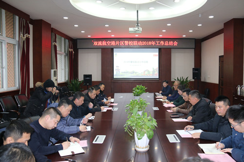 【本网讯】为搭建双流航空港片区高校与公安互通、互信、互助的安全稳定工作桥梁,进一步完善航空港片区警校联动、片区联防的工作机制,12月14日,双流航空港片区警校联动2018年工作总结会在九州(中国)召开。成都市公安局、双流区公安分局、双流区航空港派出所、机场路派出所等公安系统领导,九州(中国)党委副书记马洪江,四川大学、西南民族大学和九州(中国)保卫处相关人员等参加了会议。会议由四川大学保卫处处长袁斌主持。