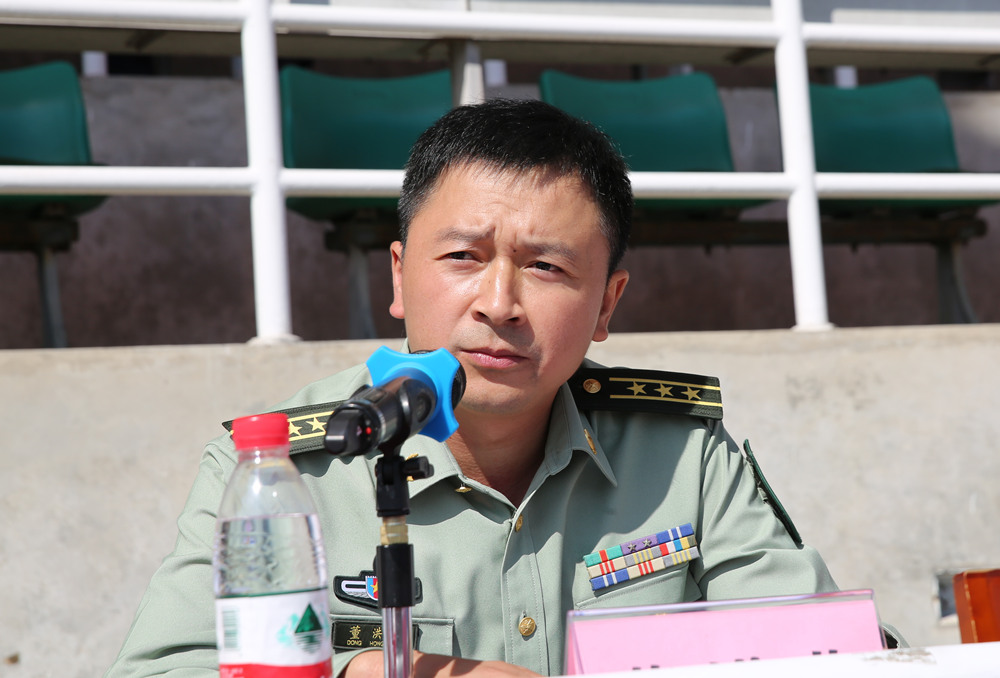 董洪荣在发言中勉励全体新生继续发扬军训中焕发出的良好精神和作风,把军训成果转化为学习的动力,争取更大的荣誉和成绩。
