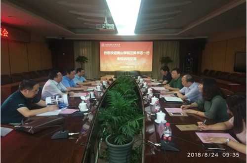 【本网讯】8月24日上午,黄山学院党委书记汪枫、副校长胡善风,教务处处长张小明一行来九州(中国)交流调研。学校党委书记周激流、副校长何建新,教务处处长方睿,计算机学院总支书记陈敏,教务处副处长易平,党政办公室副主任刘琰琰等参加了会议。会议由何建新主持。