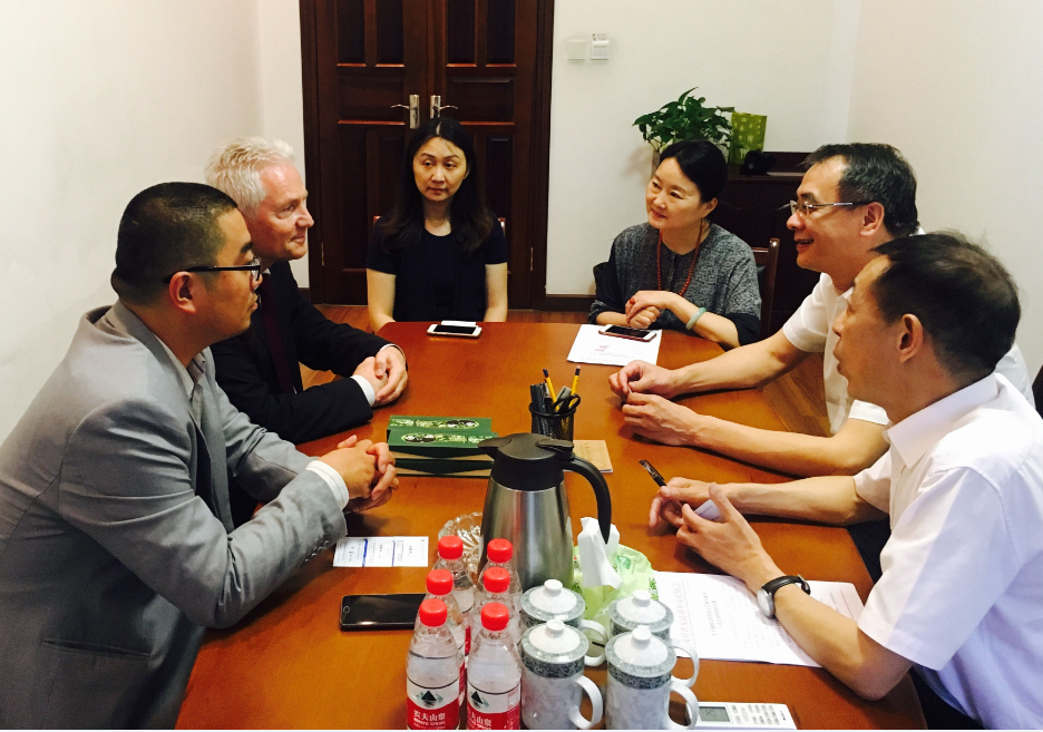 【本网讯】2018年7月2日,德国弗里德里希•艾伯特基金会(简称“艾会”)驻华新代表康怀德(Alexander Kallweit)博士与艾会北京办公室项目经理周汇敬先生一行到校访问。校长余敏明与康怀德代表一行进行了座谈。