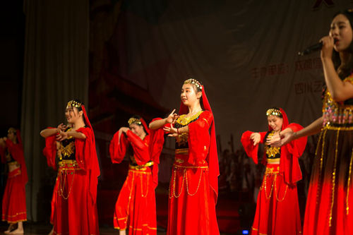 成都文理学院代表队带来的活泼欢快的维吾尔族舞蹈《节日的喜悦》,让观众感受到了维吾尔族人民的热情和豪迈好客的心情。
