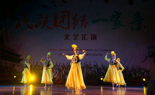 整场汇演民族特色浓郁、民族感情真挚浓厚, 包括维吾尔族、藏族、彝族、羌族及汉族等同学在内的190余名演员的精彩表演,给现场的观众奉上了充满浓郁民族风情的文艺盛宴,加强了高校之间的交流交融与合作,深化了兄弟院校各民族同学的友谊与情感,增进了各民族同学之间的交流与沟通。