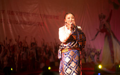 四川华新现代职业学院代表队带来的独唱《贡布酒歌》,用卫藏方言唱出了古老民歌固有的简洁质朴和浓缩的酽酽真情。