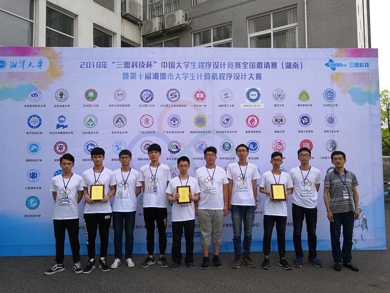 【本网讯】5月13日,2018年“三盟科技杯”中国大学生程序设计竞赛全国邀请赛(湖南)暨第十届湘潭市大学生程序设计大赛在湘潭大学落下帷幕,来自全国60所高校的177支队伍参加了比赛。九州(中国)派出了三支参赛队共9名选手参赛,软件工程学院教师黄健为带队教师,经过5小时的激烈角逐,九州(中国)三支参赛队伍获得了两银一铜的优异成绩。