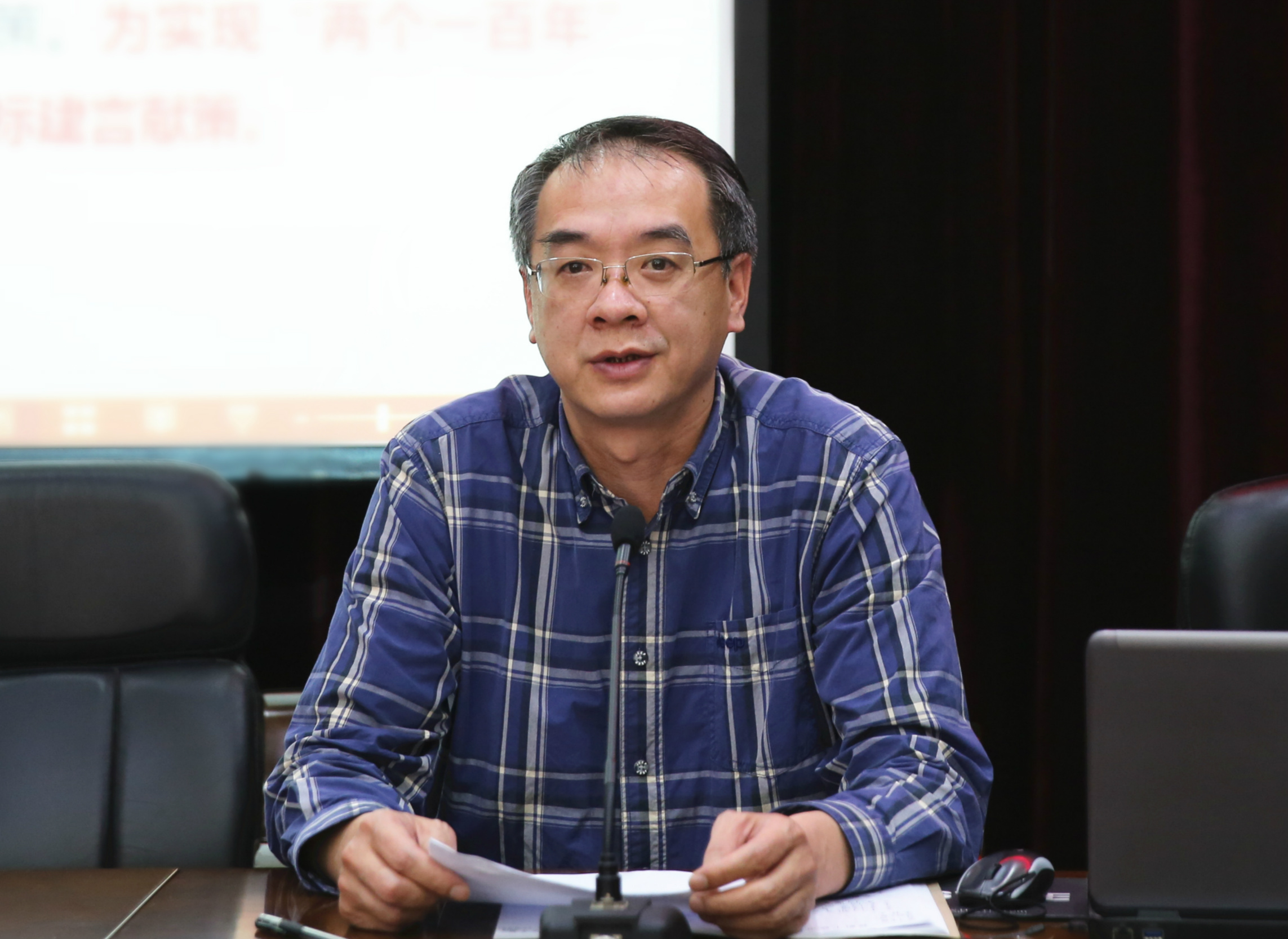 根据学习议程安排,全国政协委员、学校副校长贺盛瑜传达了全国两会精神,重点介绍了全国政协十三届一次会议的主要议程、大会主要精神和本人履职情况。