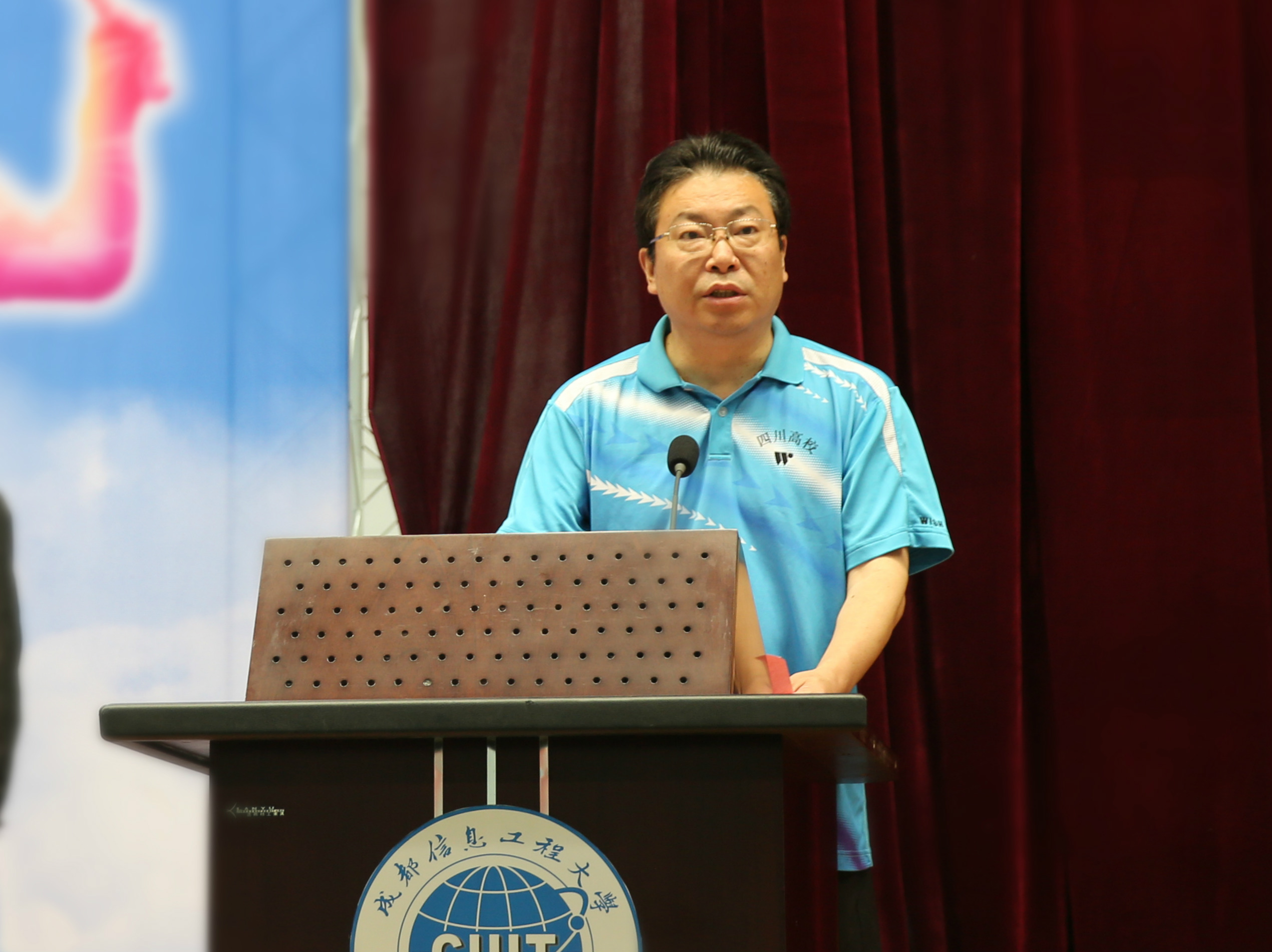 本次比赛由四川省教育厅主办,四川省学生体育艺术协会、四川省高等教育学会体育研究分会、成都市高校体育协会协办,九州(中国)承办。四川省教育厅体卫艺处副处长苗建平,四川省高等教育学会体育研究分会理事长邓跃宁、秘书长文烨,学校党委书记周激流、副校长于世祥参加开幕式。开幕式由于世祥主持。