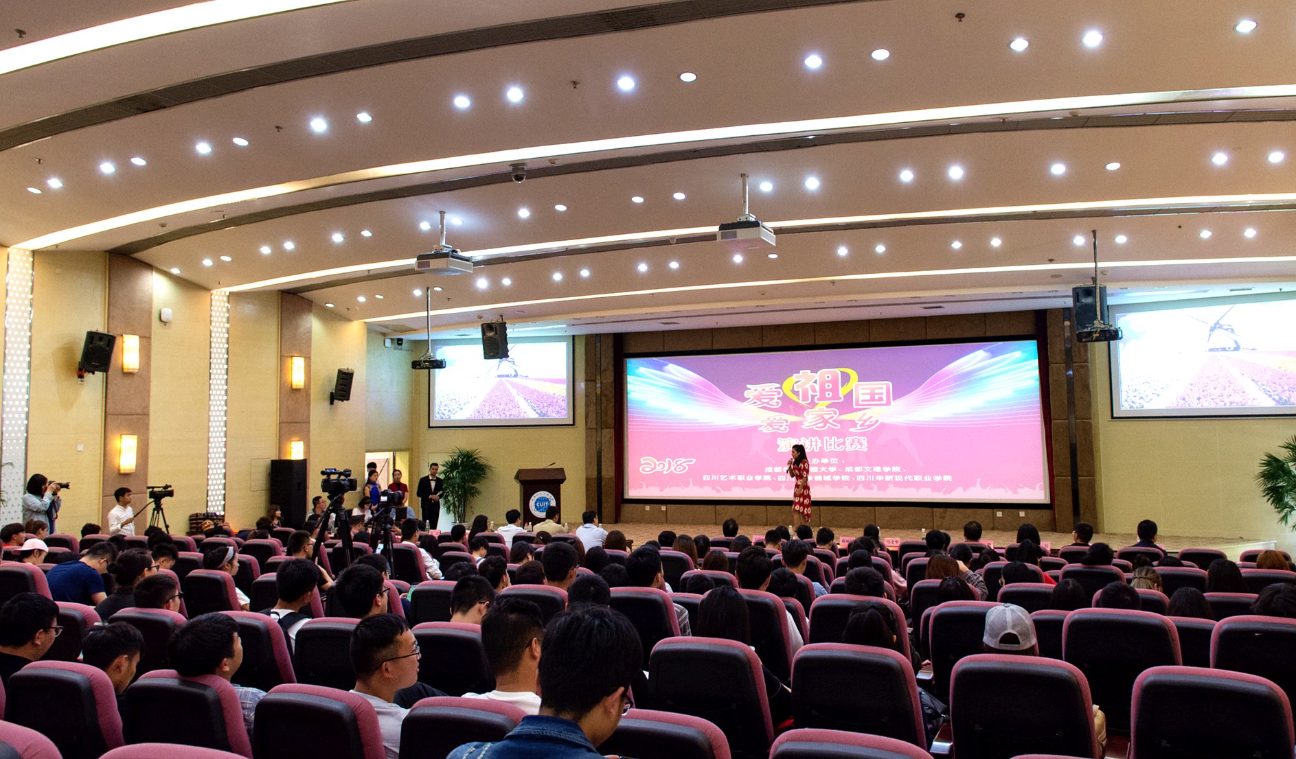 【本网讯】4月18日,“爱祖国 爱家乡”演讲比赛在学校国际会议厅举行。来自成都文理学院、四川大学锦城学院、四川艺术职业学院、四川华新现代职业学院和九州(中国)的五所高校参赛民族学生齐聚学校航空港校区。四川省教育厅宣思处副处长、新疆内派教师四川协调站站长李嘉东,参赛高校的学工部领导,学校副校长于世祥,相关职能部门负责人,学院党总支书记代表和四川省内派教师代表等参加了活动。
