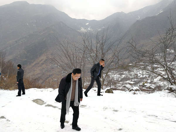 马洪江一行越过高山雪路前往兴隆镇蒲麦地村