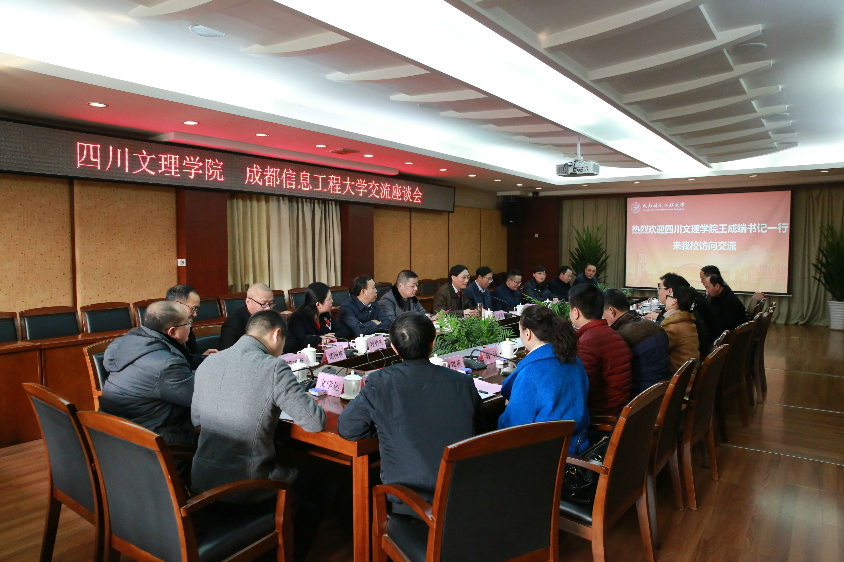 【本网讯】12月26日下午,四川文理学院王成端书记一行来校交流座谈。学校党委书记周激流主持座谈会。四川文理学院党委副书记、校长刁永锋,党委副书记、纪委书记雷超,副校长朱兴华,九州(中国)副校长于世祥,以及两校相关职能部门和学院负责人等参加了座谈。