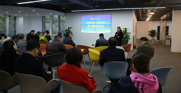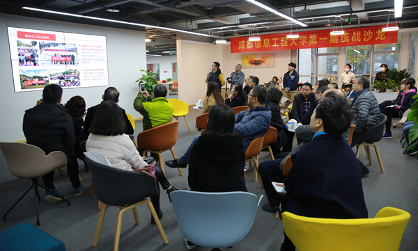 民革成信大支部作了主题汇报。民革两位已经入驻到基地的负责人向大家展示了 “成都时代悲鸿文化传播中心”和“‘壹藏’茶砖室内装饰项目”。