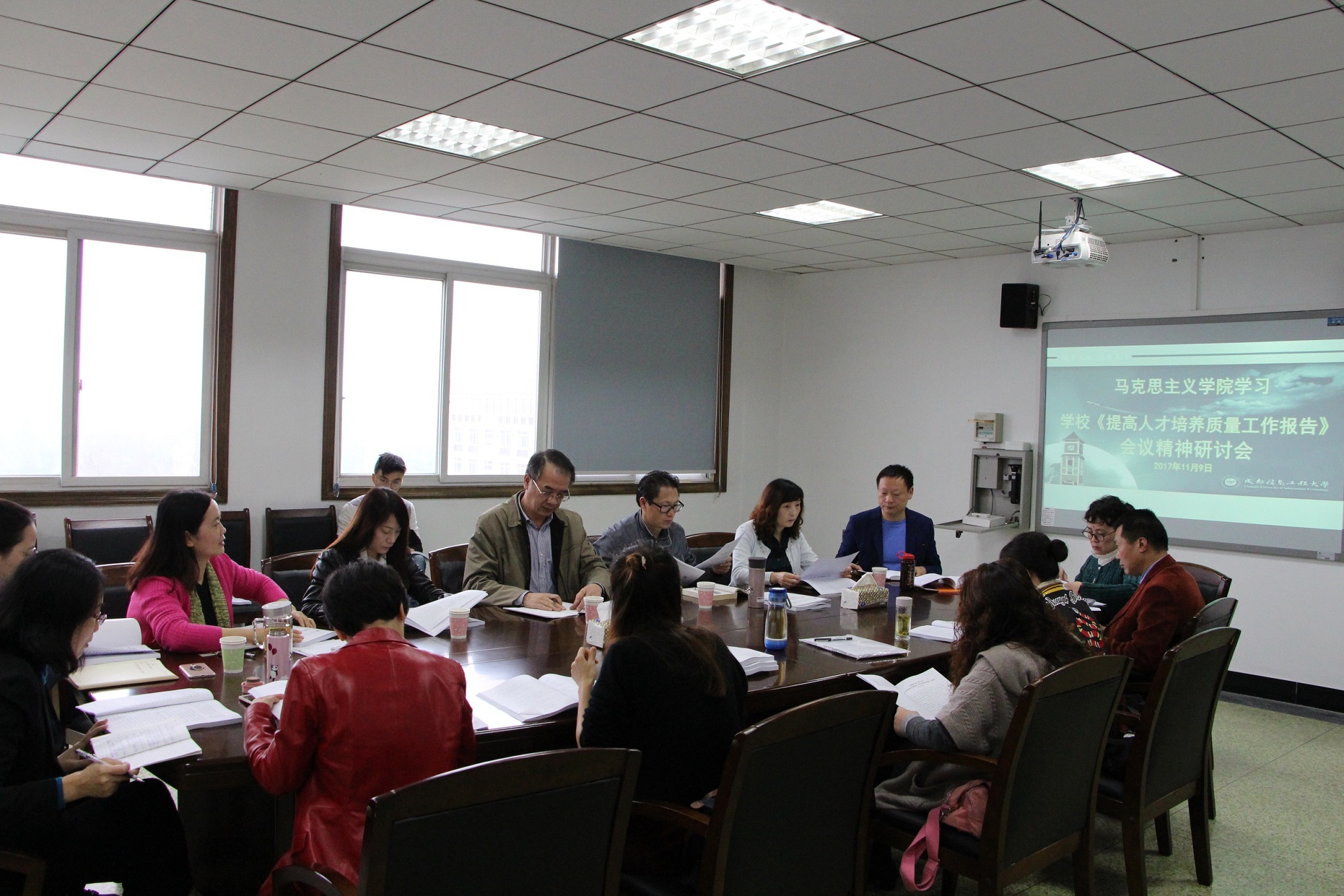【本网讯】11月9日上午,马克思主义学院在信息楼618会议室开展了关于学校提高人才培养质量工作会议讨论意见反馈会。学校校长余敏明,副校长于世祥,宣传统战部部长饶华、教务处处长陈敏、党政办副主任胡雪飞,学院全体教师参加了会议。会议由马克思主义学院院长戴丽红主持。