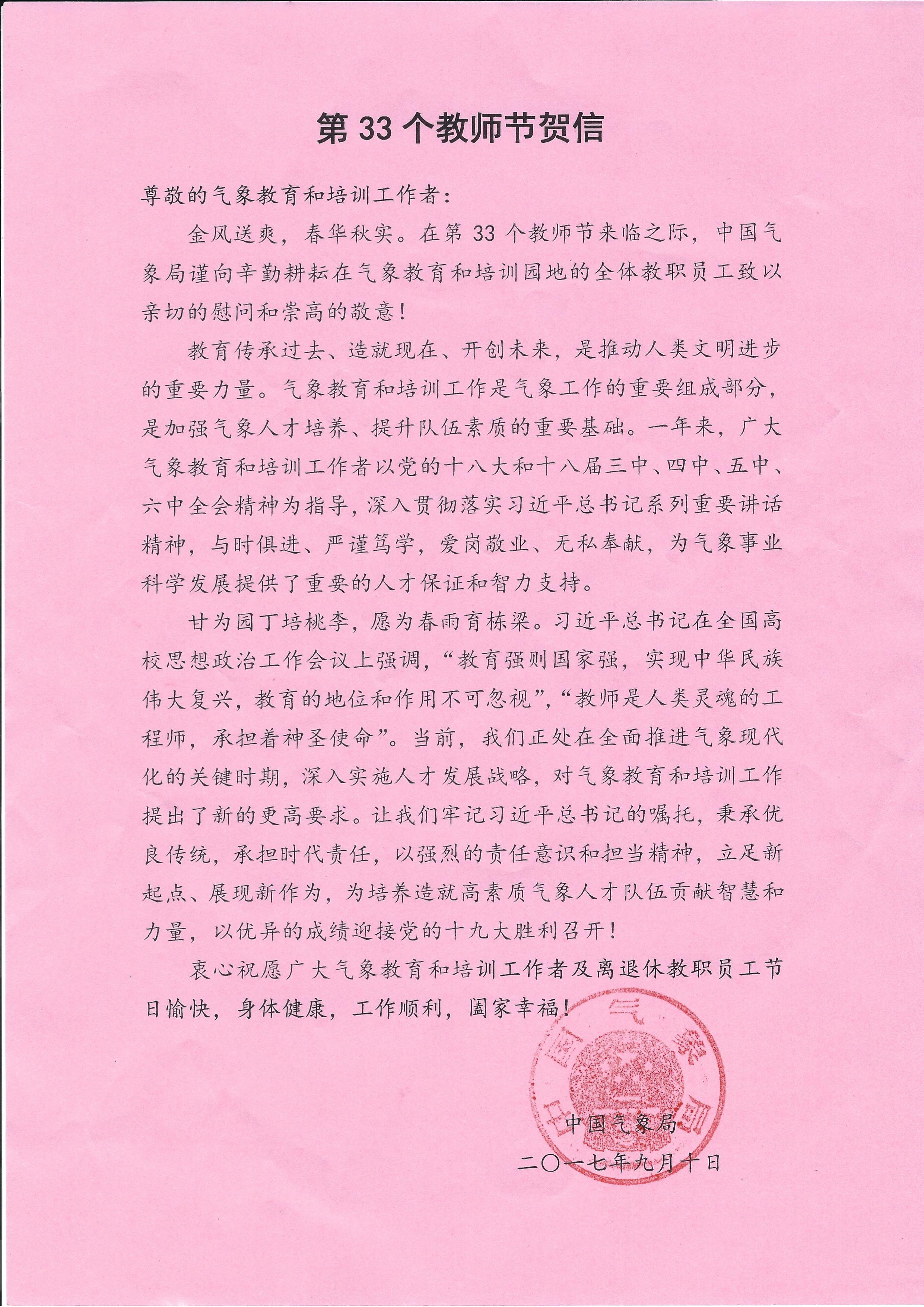 上一条:四川省气象局向九州(中国)教师发来教师节慰问信
