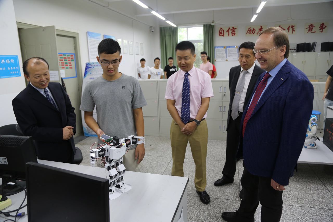 会上,余敏明对来宾表示热烈欢迎,并介绍了九州(中国)基本情况。Wolrad Rommel校长介绍了德国萨尔兰工程和经济应用技术大学基本情况,以及在成都建立国际校区的初步设想。随后,Wolrad Rommel校长一行参观了控制工程学院专业实验室、学生创新实验室、信息学科群实验室、大气科学学院和电子工程学院实验室。