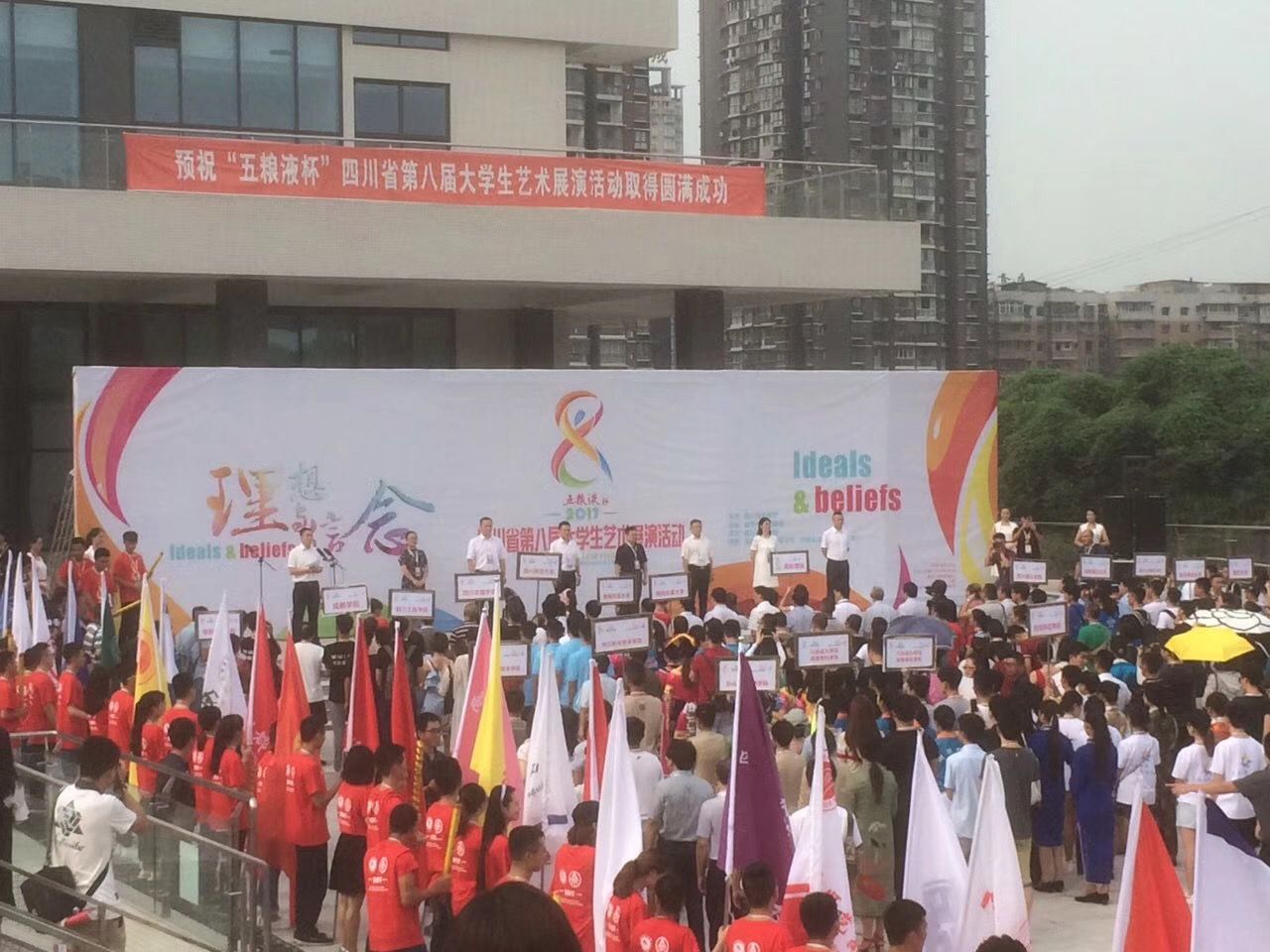 四川省大学生艺术展演活动是规格高、规模大、影响广的大学生艺术盛会,每三年举办一届,本届展演活动以“理想与信念”为主题,展演分为艺术表演类、大学生艺术实践工作坊、艺术作品类、高校艺术教育科研论文报告四大类。活动从启动到闭幕历时10个月。学校对本届展演活动予以了高度重视,校团委结合展演有关要求,于去年下半年启动各项准备工作。数月来,校团委一方面通过学校第八届大学生文化艺术节各项活动和文化艺术学院艺术设计类专业,进行了书法美术摄影和论文报告等展示类作品的征集、遴选和指导完善;另一方面邀请校内外相关领域专家、老师,结合九州(中国)实际进行表演类的作品创作编排,担任节目的指导教师,对从大学生艺术团、艺术类学生社团中选拔出的学生演员进行长达数月的艰苦训练,并克服了天气、时间和场地等带来的诸多不利影响。