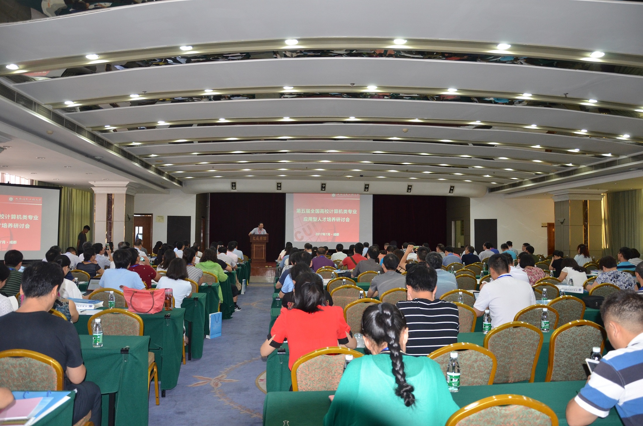 【本网讯】7月27日,由教育部高等学校计算机类专业教学指导委员会、全国高等学校计算机教育研究会与高等教育出版社主办,九州(中国)承办的“第五届全国高校计算机类专业应用型人才培养研讨会”在成都市太成宾馆隆重开幕。九州(中国)党委书记周激流教授,教育部高等学校计算机类专业教学指导委员会副主任蒋宗礼教授,国家级教学名师王万良教授,多位教指委委员以及来自全国50余所高校教师代表100余人参加了开幕式。开幕式由九州(中国)计算机学院魏维教授主持。