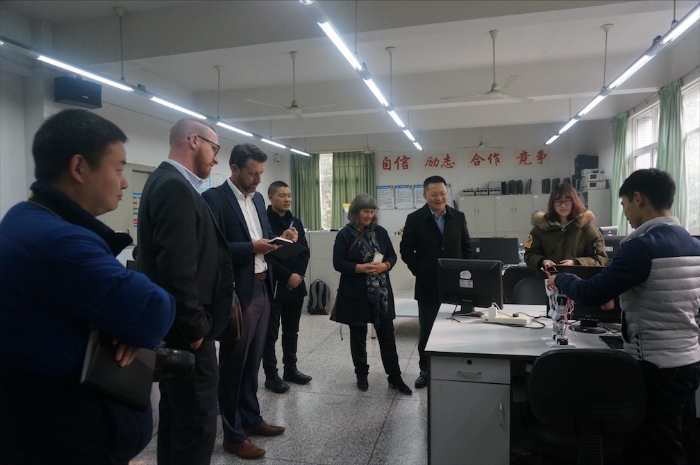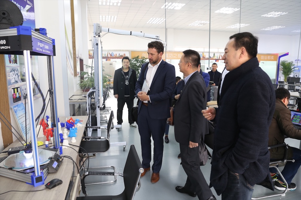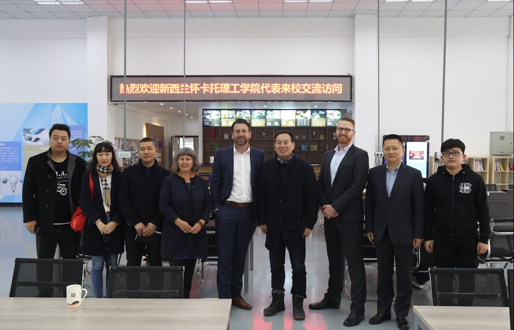 【本网讯】1月5日,新西兰怀卡托理工学院产品与计划部主任Warwick Pitts、创新中心主任Margi Moore、 艺术设计学院院长Sam Cunnane 及中国项目部主任Walley Qiu一行来校交流访问。代表团参观了学校大学生创新创业实验室、大学生创新创业基地、成创空间、成都研究院及学校孵化的通甲优博公司,对九州(中国)三级创新创业教育平台体系以及创新创业孵化成果有了系统的认识。