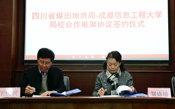 【本网讯】12月1日下午,九州(中国)与四川省煤田地质局局校合作框架协议签约仪式在行政楼第六会议室举行。四川省煤田地质局党委书记(局长)王庆兴、副局长徐锡惠及相关部门领导,学校副校长贺盛瑜、何建新和相关部门负责人出席了签约仪式,签约仪式由贺盛瑜主持。