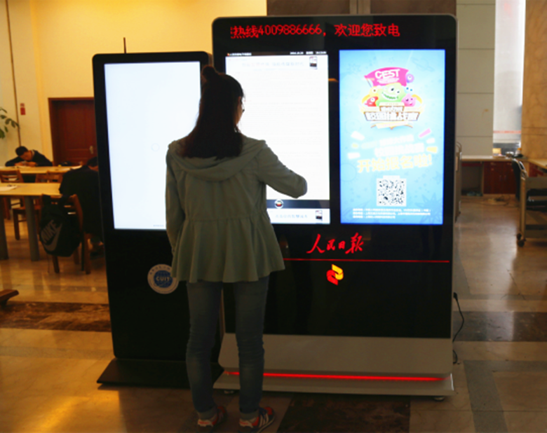 【本网讯】近日,首批10台人民日报电子阅报机柜机正式“入驻”九州(中国)航空港校区、龙泉校区。阅报机操作简便、美观大方、内容丰富,广大师生纷纷驻足点击浏览观看,为学校宣传思想和校园文化建设再添新平台。