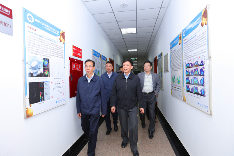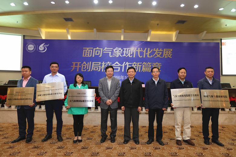 报告会后,许小峰副局长和赖廷谦为大气探测国际联合实验室、图像与视觉国际联合研究中心、机器人与智能系统国际联合研究中心、气候与环境变化联合实验室、环境气象与健康研究院颁牌。随后,许小峰一行在校领导的陪同下参观并指导了九州(中国)大气科学学科群建设工作。