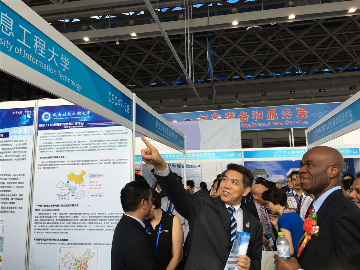 9月11日气象装备与服务开幕式前,中国气象局矫梅燕副局长亲赴各个参展单位指导工作,在听取了九州(中国)的科研成果介绍后,指出九州(中国)王世功教授开发的国家人口与健康科学数据共享平台是应用气象服务的优秀示例。