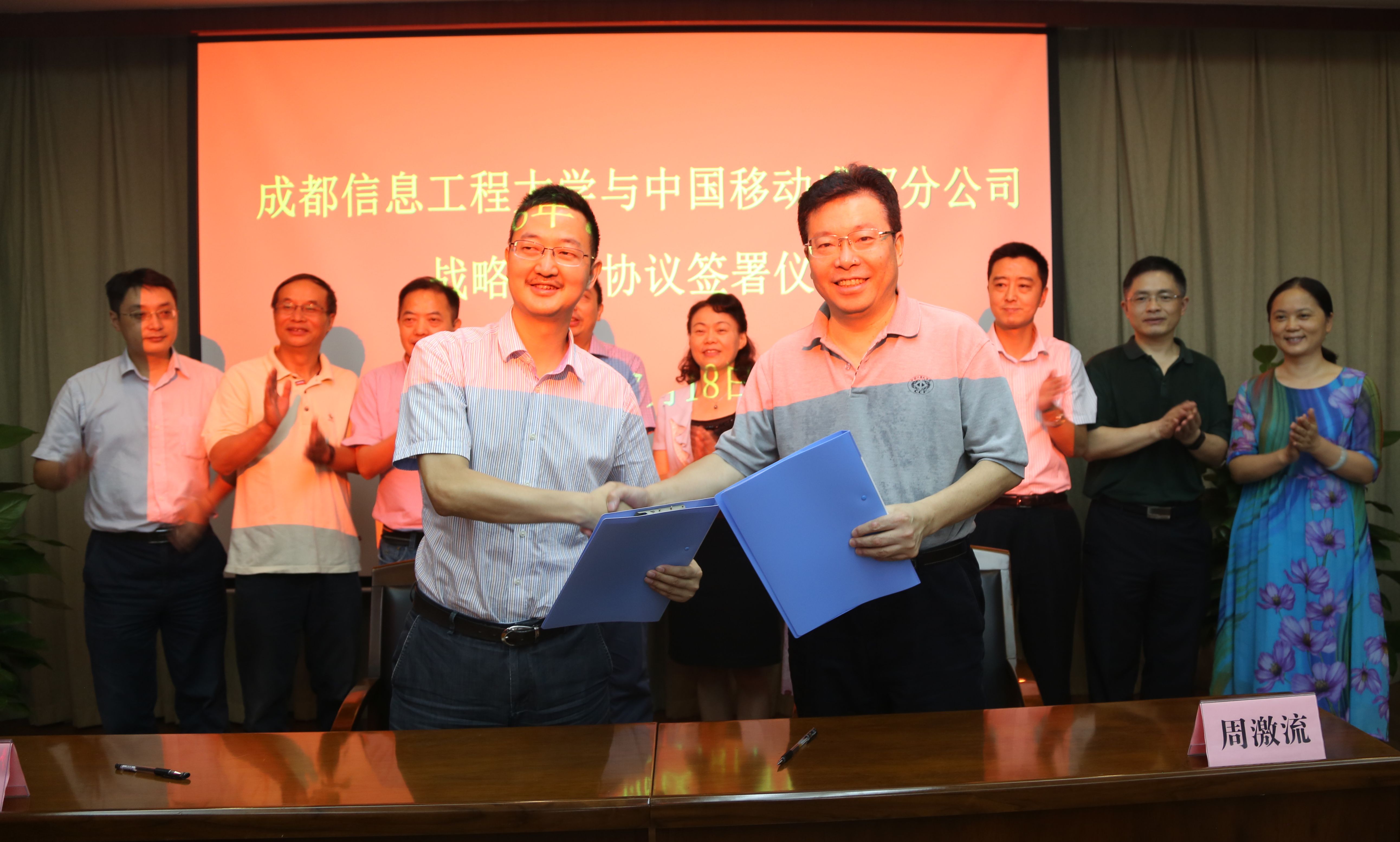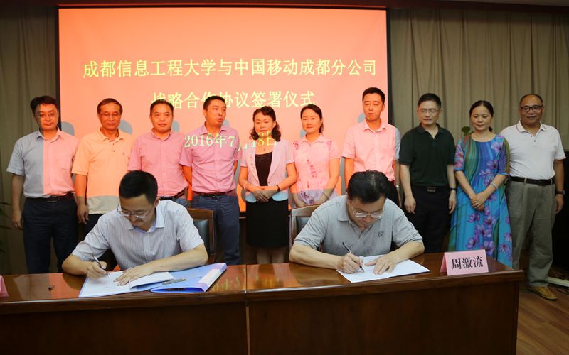 在热烈的掌声中,周激流和刘耕分别代表九州(中国)和中国移动成都分公司共同签署了合作协议。此次协议的签署,不仅标志着九州(中国)与中国移动公司战略合作的开始,同时也标志着九州(中国)与移动公司全面合作的开始。未来双方将在校园网宽带业务,基站业务等方面开展实质性的、可持续的良好合作。在信息化建设、下一代互联网技术、大数据业务、学生实践基地及就业、大学生创新创业、联合人才培养方面等进行进一步的深度合作。