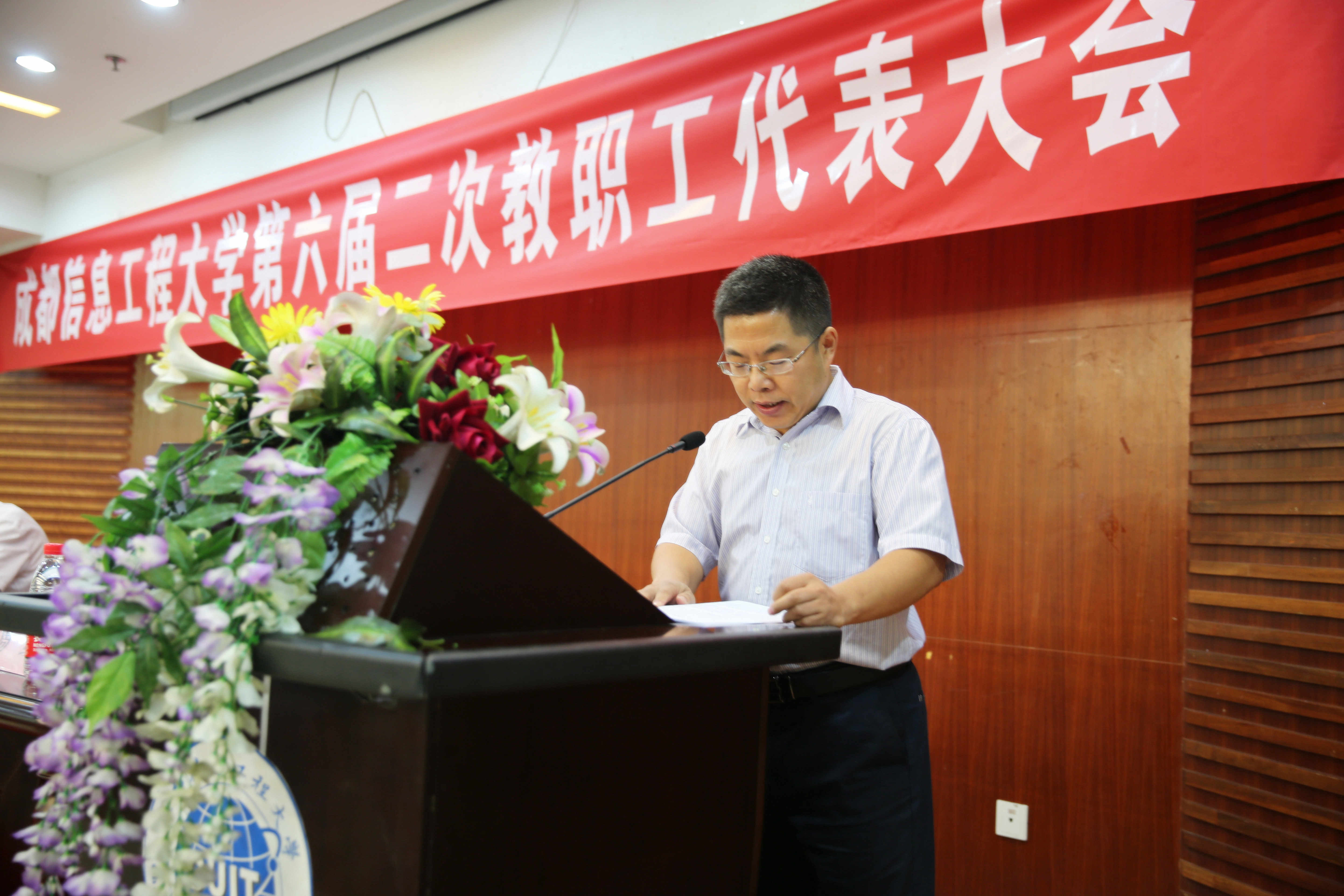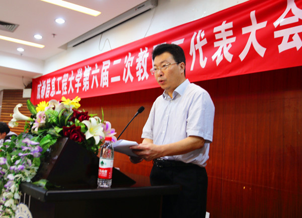 【本网讯】7月11日,学校第六届二次教职工代表大会在航空港校区学术报告厅隆重召开。学校第六届教代会代表共105人参加了会议,学校第六届教代会执委会副主席黄萍同志主持了会议。