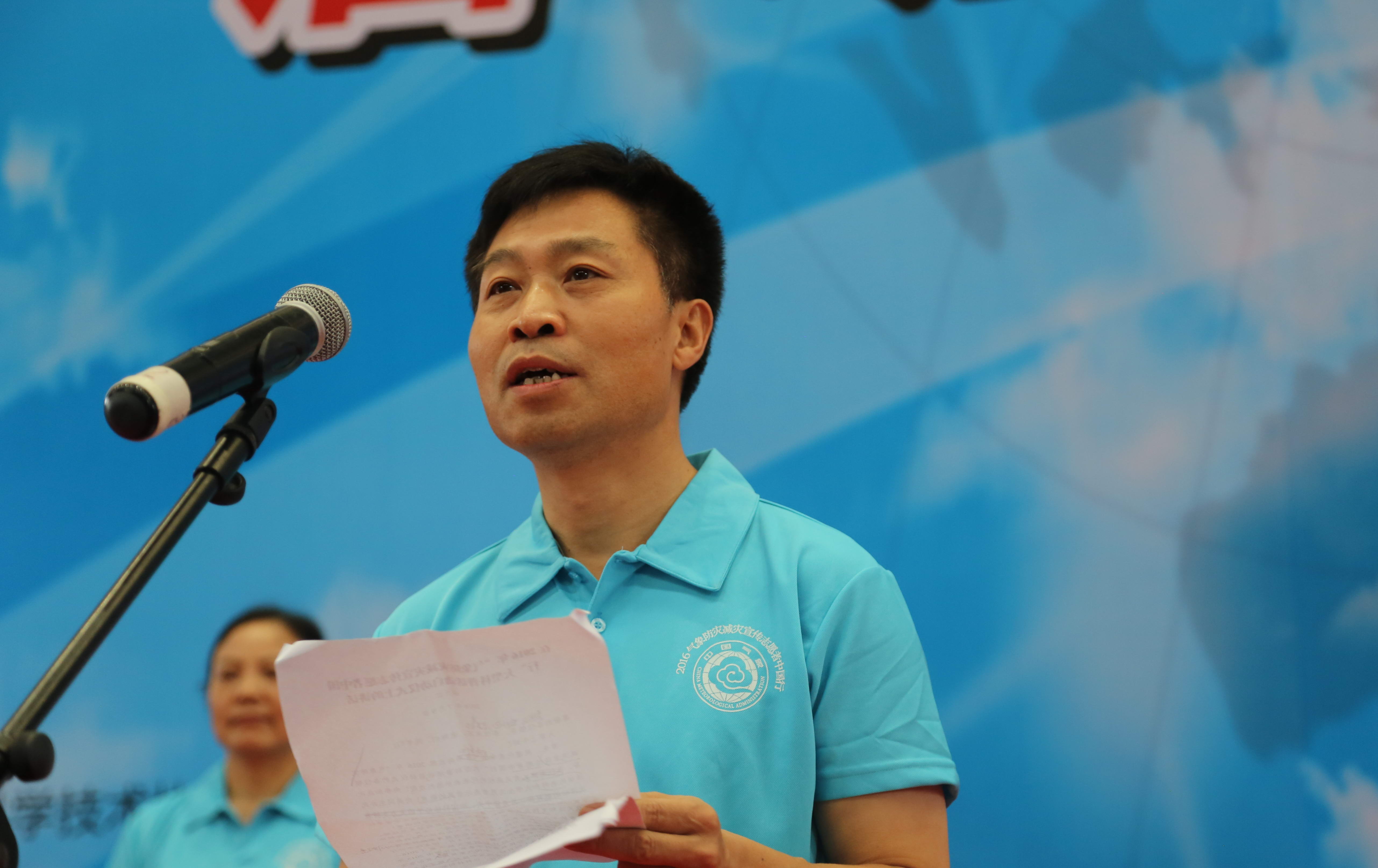 赖廷谦代表承办单位致辞。他说,青年,是朝气与梦想的代言人,是未来的中坚力量,是应对不断变化的天气和气候的新一代,在气象科普宣传工作中发挥着积极作用。他希望全体志愿者秉承志愿服务精神,开展扎实有效的科普工作,积极传播气象科学知识,不断提高全体人民的科学素质,为广大人民的福祉安康服务;深入基层,在传播科学文化知识的同时多观察、多思考,开拓创新,扩大自己的视野、锻炼自己的能力、增长自己的才干,提高自己的综合素质,展现了广大气象学子的风采。
