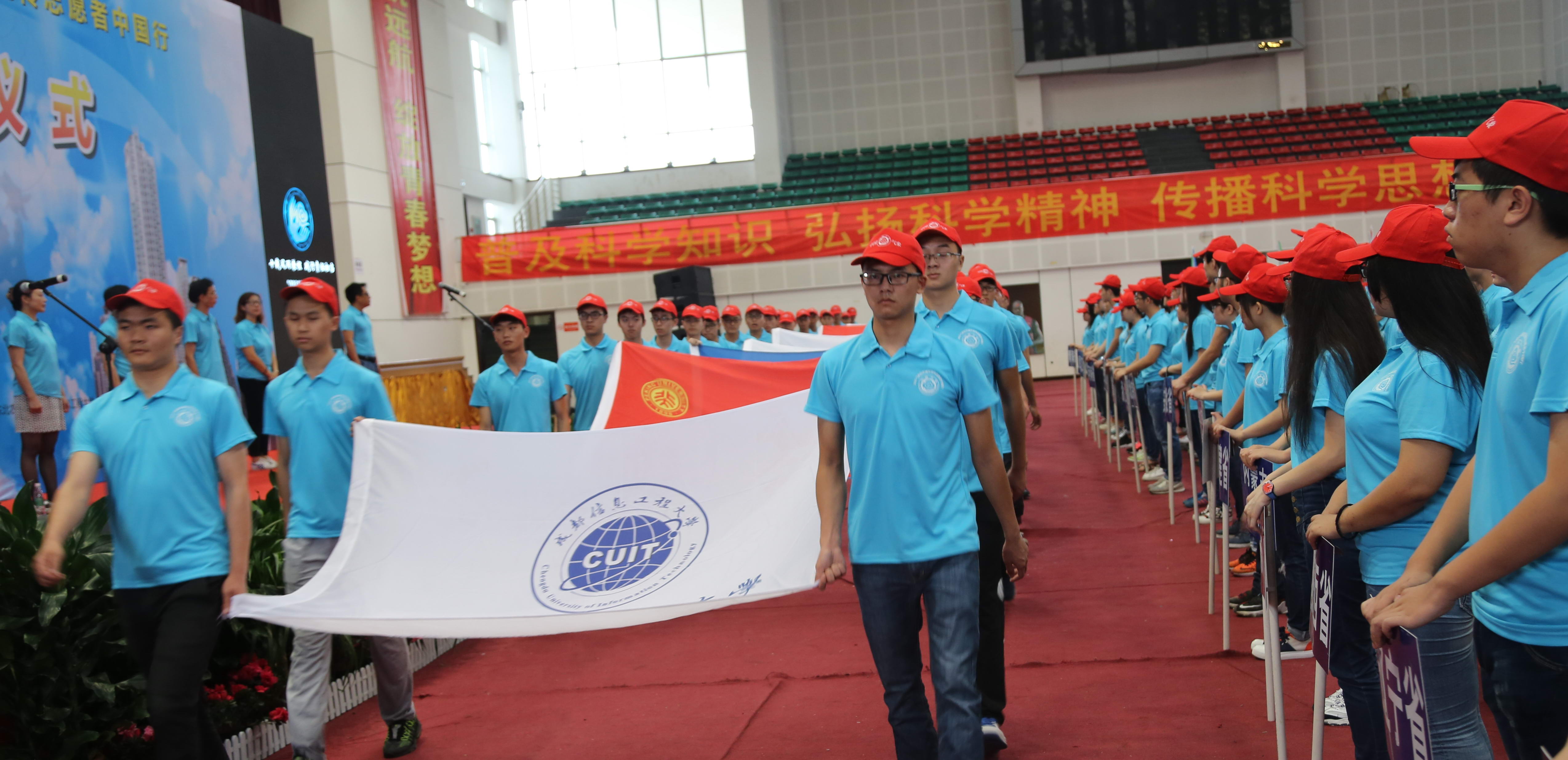 志愿者代表出各高校校旗