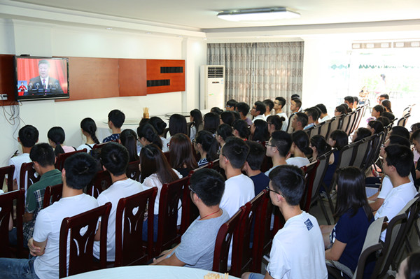 政治学院江俊文教授在观看直播时感慨:“总书记的讲话从历史到未来,从理论到实践,从改革到开放,全面系统,高屋建瓴,铿锵有力,充分展示了中国共产党人领导全国人民建设中国特色社会主义的决心和自信,让我们对党的领导更有信心,对实现中华民族伟大复兴的中国梦更有信心。”