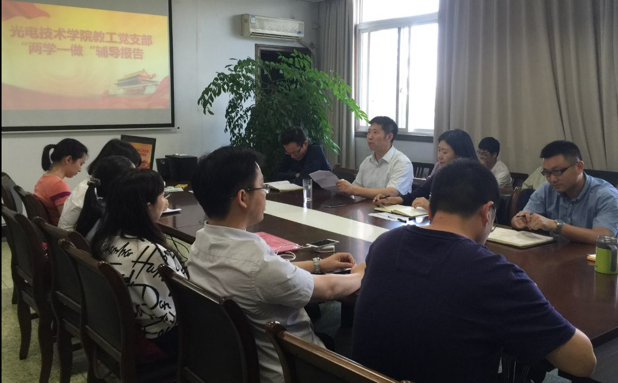 【本网讯】 为深入推进师生党员“两学一做”学习教育,落实学校党委关于开展“两学一做”学习教育的实施方案,6月3日下午,学校党委常委、副校长余万伦到光电技术学院作“两学一做”专题辅导报告,报告会由教工党支部书记彭龙主持,全体教工党员参加了报告会。