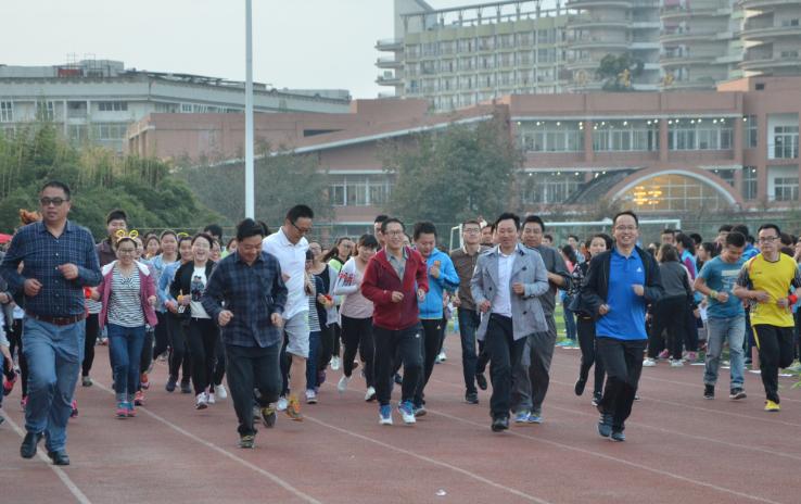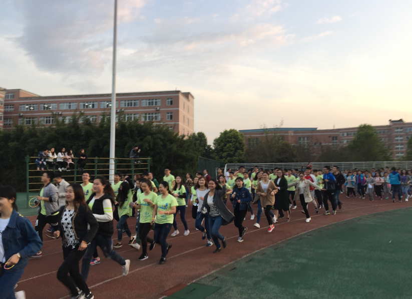 在健身教练的示范下,现场全体师生进行了跑前热身运动。起跑指令发出后,大家在于世祥的带领下,穿戴各种荧光道具开始了校内环线夜跑。同学们不停地挥舞着荧光棒,喊着整齐口号,充满青春的激情与力量,把整个龙泉校区变成了一个运动的欢乐世界。