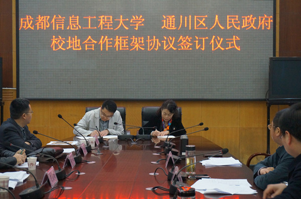 慰问活动结束后,贺盛瑜一行在通川区委召开了座谈会。座谈会上,区委副书记何世清介绍了全区脱贫攻坚工作开展情况,副区长张乐与学校签署校地合作及旅游合作框架协议。随后,通川区区委常委、组织部长朱挺在座谈会上宣读关于郭创乐在通川的挂职决定。最后,学校与通川区就旅游规划及信息网络平台等项目进行了进一步沟通。